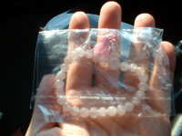 | もう一つ姉ちゃんのお勧めがこれ! 本場インド天然石ブレスレット念珠。 恋愛運を向上させる!というピンク水晶の物です。 私:「ほんまにこれ恋愛運向上するん?」 姉:「もちろんです!保障します!」 私「おお!言い切ったな!ほな買うわ!」 姉:「・・・・・・・・多分。」 私:「・・・・・・・・・・」 |
