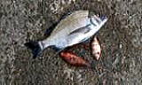 チヌ(20~16cmチンチンサイズ)4匹、グレ(27~20cm)16匹、ヒイラギ3、サンバソウ2、アジ1、タコ1、ウグイ3、ボラ3の釣果