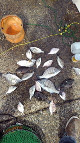 チヌ3枚(13cm級)アジ4、ゴンズイ31、ボラ4