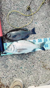 チヌ2枚(23、15cm級)、グレ1(20cm級)、アジ6、ゴンズイ14