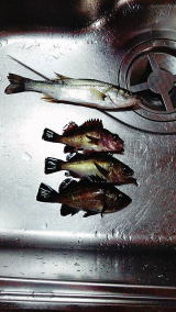 メバル3匹(18cm級)、セイゴ1(30cm級)