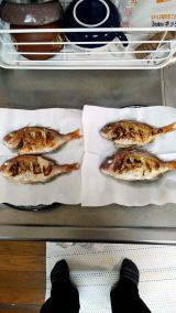 8/18(土) 本日のチヌは小チヌ2枚をプロの調理人にお頼みして料亭塩焼きで頂きました~(^^♪