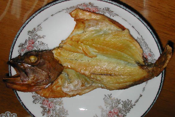 取り出した魚を天日で4〜5時間(照カリが出て水分が出ない状態)乾かす。
