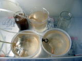 2010年8月13日 月齢3 ゾエア半分ほど死亡。 コトエ数十匹に。 各槽、壁面に水垢が付いてきたので、コトエが絡み取られないように、いったん別容器に移して洗浄。 ザリ餌、スピルリナサプリに加えて、クリル投入。 2010年8月14日 月齢4 孵化後20日 ゾエアが居なくなった。 コトエは3槽合わせて100匹以上! ブライン、ほとんど減っていない。 ザリ餌、スピルリナサプリ、エビ卵投入。 本日、貝殻も投入。