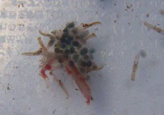 2010年7月29日 月齢17 保育容器に300匹程度残して間引く。 ちょっと試したいことがあって、いつもより多めに残すことに。 間引いたゾエアは海水水槽に投入。 今年は海水水槽に魚がいないので、瞬食されることなく、しばらくゾエアの様子が観察できる。 タッパーではピンピンとよく動いているが、ゆったりとした水流に乗って浮力が確保できれば、ほとんど動かず流れに漂う。 この水中での動きを念頭において、保育容器のエアレーションを調節する。