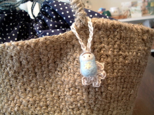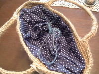 ジュート糸をかぎ針でかご型に編んだバッグです。