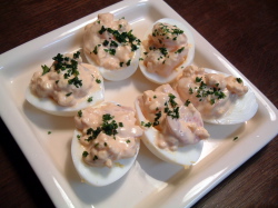 Huevos rellenos de gambas