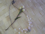 使用ビーズ:淡水パール、スワロフスキー(アクアマリン)、チェリークオーツ、珊瑚ビーズ、チェコビーズ サイズ:約3cm×3cm