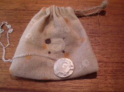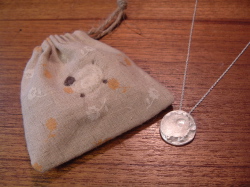 -ひつじさんのシルバーネックレス- ひつじさんをモチーフにしたシルバーネックレスです。 1円玉くらいの大きさでボリューム感もあります。 かわいいフェルト刺繍のひつじ巾着に入れてお届けします。 (巾着の布は変わる場合があります。) チェーンも純銀。長さ約40cm。