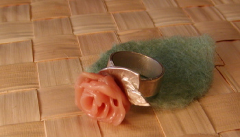 珊瑚色のばらとシルバーの葉っぱと鳥を組み合わせたかわいらしいリングです。御希望のリングサイズをご注文時に備考欄に書いて下さい。こちらの商品はご注文いただいてから作成いたします。(お届けまで1週間程度) 価格1800円 数量を選択してカートをクリックしてね |