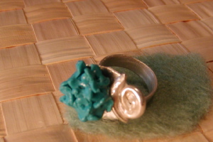 トルコブルーのあじさいとキュートなかたつむりのリングです。御希望のリングサイズをご注文時に備考欄に書いて下さい。こちらの商品はご注文いただいてから作成いたします。(お届けまで1週間程度) 価格1800円