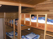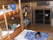 男の子の部屋は部屋自体に段差があって、両側に2段ベッドが3台(合計10人部屋)並んでいます。