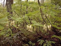 海外の山々が、その広大さの故も手伝って、自然が 保護された形で残っているのに対して、日本の自然は その国土の狭さ故に(だけではないのでしょうが…)、 人工化・観光化されてしまっているのは、とても悲しい! 1999年3月、ニュージーランドの、その人の手によって 汚されていない荒れた(?)自然のままの温かい山々を味わ って帰った後、日本のどこかにも…、と探し当てたのが、 ここ京都大学の芦生演習林-原生林-でした。 人の手が入っていない自然の温かさに加えて、美しい 又珍しい植物を眺められたのも、嬉しい山歩きの一日でした。