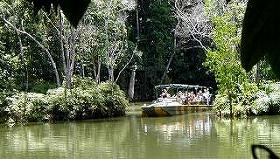 クランダ村に着いてからマーケットなどを散策後、 熱帯雨林パークである「レインフォレステーション」に向かうシャトルバスに乗ること約15分。 水陸両用の古い戦車(アーミーダック)に乗って熱帯雨林を観光。このチケットもツアーでないと取れないかもと言われていましたが、難なくゲット出来ました。 ここは沖縄離島のマングローブの林の方が良かったかな? 説明の英語もアーミーダックのガタガタ音がうるさくて?良く聞き取れませんでした。 |