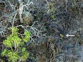 | そして、画像は突然空(熱気球)から。 写せなかったと思っていたカンガルーor ワラビーが写っていたのです。 色彩的には「ネズミ」と同じですね。(~_~;) でも正真正銘、私が写したカンガルーor ワラビーです。 白い矢印のところです。 |