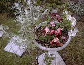 ![]() シロタエギクとパンジー |