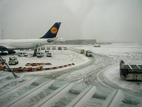 またまたフランクフルトで5時間30分の乗り継ぎ 待ち時間。今回は日中の待ち時間だったので、 それほど苦痛ではなかったのですが、 どんどん降り積もる雪に、予定通り離陸できるのか どうか、気が気ではありませんでした・・・。 帰国してすぐに、BBSのほうにも書かせて頂きました が、結局無事乗り込んだものの、機内で離陸を 2時間も待たされてからの出発になり、帰国時間も それだけ遅れました。 が、何とか無事予定の日(5日)には帰る事が出来、 ヤレヤレでした〜。 |