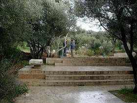 アクロポリスの丘への階段。 その階段さえ『美』を感じさせられました! 周囲は『○○ー○』の木がいっぱい!(←クイズ1) 葉がシルバーで、その風景はいかにもギリシャ風。 日本ではグリーンの実として知っていたので、 その黒く熟れた実をもいで、口に含みかけたら、 ガイドのミランダさんが「ダメダメ!」と。 「でも、食べても死なないでしょう?」と私。 頷くのを見て早速口に。 確かに、苦い…。 でも、その時の中の種を しっかり持ち帰りました。 芽が出るかしら? |