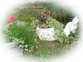 ![]() 玄関脇のロバの荷車。アイビーが伸び過ぎて 重い荷を運んでいるように見えます。(^^ゞ |