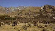 岩肌の山や茶色のレッド・タソックという名のブッシュが生い茂る山麓。