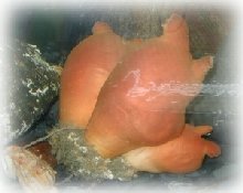ホヤ貝ーホテルの水槽で養殖していた。 これは,刺激を与えて縮んだもの…。