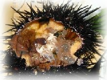 これは、食卓に上がった、生うに…。 箸で、うにの身?を取るたびに、黒いイガイガが ぐねぐね動くのですー。