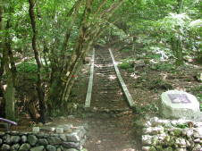 観音峰展望台までは遊歩道を歩く。観音峰展望台からは稲村ヶ岳をはじめ素晴らしい景色を見渡せる。観音峰展望台から、いくつかピークを越えて観音峰頂上、ここから杉の植林と自然林の境界を行く登山道に変わり、三塚を経由して法力峠に至る。法力峠からは、杉の植林の中、よく整備されたなだらかな道を下り、稲村登山口に着く。 |