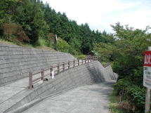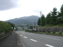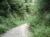 高山林道は車が1台通れる程度の幅の舗装された林道で両側が樹木に覆われほとんど展望はきかない。途中林道をそれて林間を歩くこともできるが、今日は「コロ」をつれているのでこのまま林道を行く。九十九折にしばらく登っていくと唯一展望が開ける高山森林公園の展望台に着く。休憩施設やトイレは閉鎖されている。展望台も影がなく暑くて休憩には適さないので先へ進む。