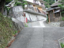 左に折れてすぐ右に登山口がある。こちらから入っていくと登山口の標識が木の陰に隠れているうえ草も茂っているので、うかっとしていると登山口を見落として進んでしまいます。以前初めて三石山へ来たときは、ここを見落として真っ直ぐ行き、山腹を捲いて反対側の御幸辻からの登山道を登った。
