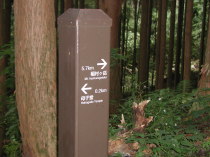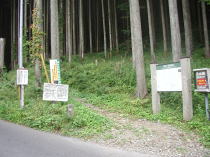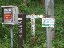 (6) 登山口に立つ道標と登山届けのポスト。