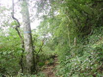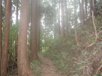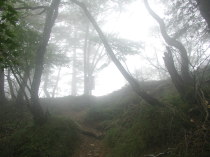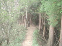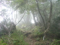 引き続き杉の植林の中の薄暗い道を歩いていると、いつもことだけどなんとなく心細くなってきて途中まで行って引き返そうかなと思ったりする。途中、単独行の人とすれ違う。途中の水場は豊富に水が出ている。ここで顔を洗いまた前に進む。なだらかな道が飽いてきたころ前方が少し明るくなり法力峠に着く。観音峰からの銃走路が右上方から合流している。ここは少し切り通しになっていてよい風が吹いている。