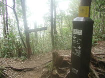 (16) 法力峠。右へ行くと三塚から観音峰。稲村ヶ岳へは直進する。 |