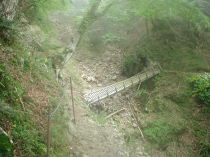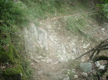 (24) 道が崩落した箇所。ロープを伝って下を通過。 |
