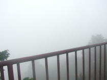(26) 頂上展望台。霧で何も見えない。 |