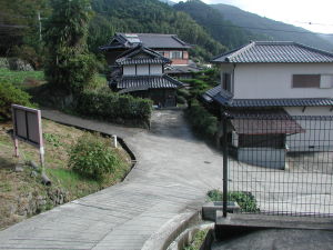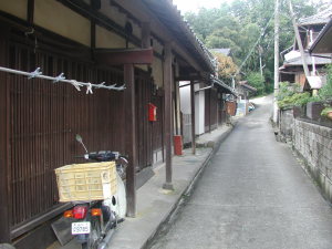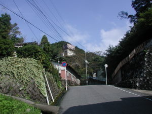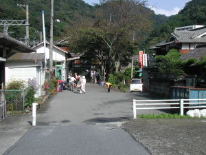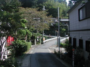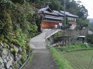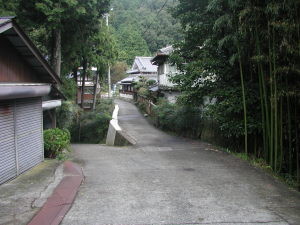 (10)旧R371号線に出合う。横断して前方の細い道を上がって、紀見峠の集落(宿場町跡)へ進む。