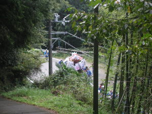 (11)にぎやかな声が聞こえてきたと思ったら、旧国道をだんじりが上がってきた。