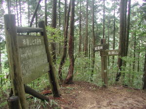 ここも直進する。途中、左に十字峠への分岐がある。ここを左へ行くと十字峠を経て、府庁山、旗尾岳から南海天見駅方面、府庁山から田山、クヌギ峠を経て南海千早口方面に行ける。ここも直進して先に進むと、また、左手に十字峠への分岐がある。こちらは途中沢があり初心者向けではないようだ。ている。