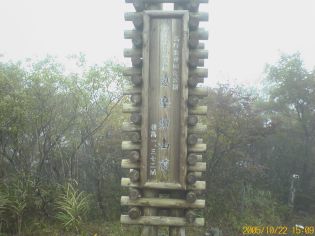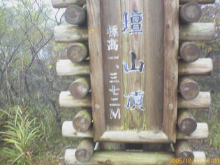 ゲートのあたりまで戻ってくるとまた霧が出てきた。スカイラインを曲がるとき護摩壇山から下りてくる登山姿の人たちを見かける。せっかくここまで来たので、護摩山タワーの駐車場に車を停め、他の家族は売店に残し、子供と二人で護摩壇山頂上まで登る。駐車場の売店の横から緩い傾斜の幅の広い遊歩道のような道を上がっていくと途中で木の階段に変わり15分ほどで山頂に着く。