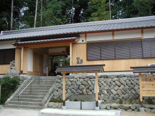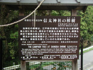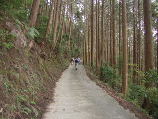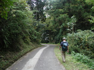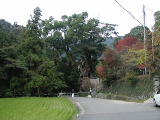 農免道路を渡り農村風景の中を前方に和泉山脈を仰ぎながら舗装された道を緩やかに上っていく。右手の信太小学校を過ぎ、さらに進むと右手のほうに立派な樟木と神社があるのでお参りする。ここから一本杉の少し手前まで舗装された林道を歩くが、かなりきつい傾斜の上りがずっと続く。