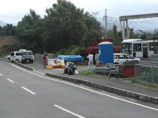 お昼は先ほどもらったおにぎりと豚汁の引換券があるので、ちょうど朝飯を食べていなかったのでコンビニで買ってきたおにぎりをここで食べてから出発する。