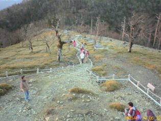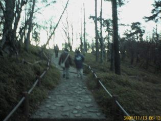 風は止んでいる。大勢歩いているので真っ暗でも不安はない。また、日出ヶ岳まで2km弱はよく整備された遊歩道になっているので夜間でも歩きやすい。歩き出してすぐに空が明るくなってくる。途中で車の中にカメラを忘れてきたことに気付いたが、取りに戻るのはあきらめて先を急ぐ。