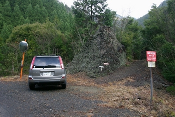 宗小屋橋を右折するとすぐにこの大きな岩があります。2〜3台の駐車が可能です。(8:40)