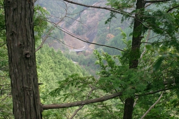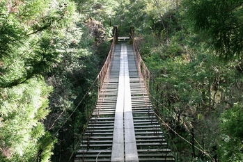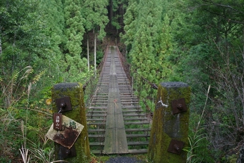 上の岩の右を抜けるとすぐに現れる吊橋 (9:00)