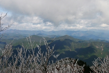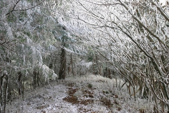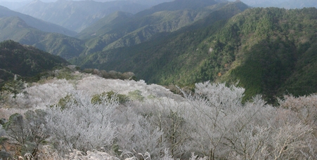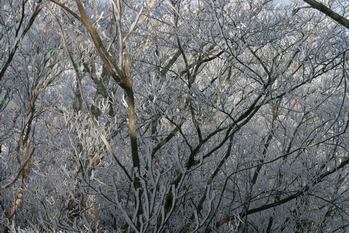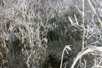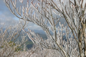 樹氷のUP。空に青くなってきました。