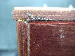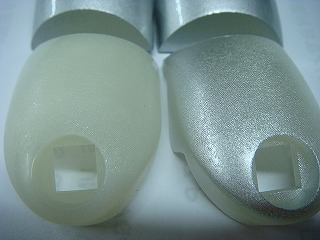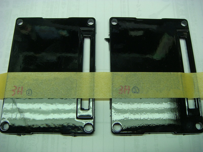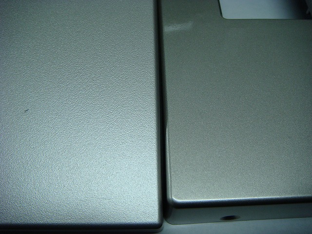 左側の塗料では見事に素材のヘヤーラインが消えるほど塗膜がのっている。