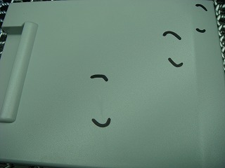 (白いABS樹脂板に、黒の塗料でブツ跳ばしを行いました、全て同じ白板です。)