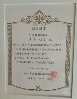 ・申し込む→受験料入金→受験教材届く→リースの制作をする。→完成画像を写メにて送付→合格→講師認定証、認定名刺届く