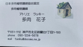多肉苗等を仕入れに行く際に講師としての証として教室の名刺が必要でしたので