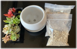 ①容器②多肉苗③ハサミ、