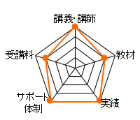 | 講義時間数・講義スタイル | インプット講義 :68時間 アウトプット講義:24時間 合計:92時間 講義は通学講座を収録。黒板の前に立ち、板書して解説 |